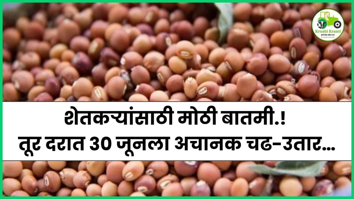 शेतकऱ्यांसाठी मोठी बातमी.! तूर दरात ३० ज...